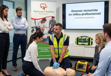 Devenez secouriste en milieu professionnel avec Vitasecours Academy. Formation certifiée, conforme aux normes, pour intervenir efficacement et garantir la sécurité en entreprise. Inscrivez vos travailleurs!